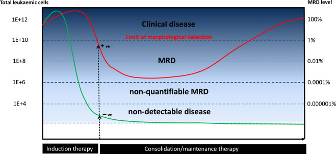Minimal residual disease is the name given to small numbers of leukaemic cells that remain in the person during treatment, or after treatment when the patient is in remission. It is the major cause of relapse in cancer and leukemia